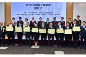当社は、第7回100年企業顕彰(主催:100年経営の会、共催:日刊工業新聞社、後援:経済産業省中小企業庁、日本商工会議所、全国商工会連合会)において、「優良100年企業」に選出されましたことをお知らせいたします。