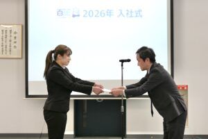 4月1日、当社渋谷本社ビルにて、2名の新入社員を迎え、入社式を執り行いました。